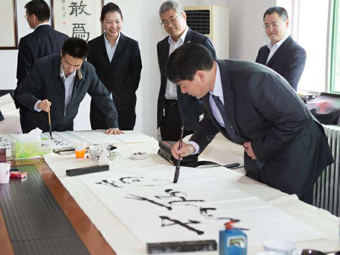 为弘扬传统文化,丰富员工业余生活,5月6日上午,AG网页版-AG(中国)举办了首届书画艺术学习交流活动。本次活动邀请了中国书法家协会会员孟云飞博士、中国书法家协会理事张铜彦先生、中国书法家协会编辑出版委员会副主任王荣生教授、人民艺术家协会理事于瑛先生等国内知名书画大师,各位书画大师在活动现场进行了艺术创作表演,挥毫泼墨,交流技艺,为AG网页版-AG(中国)留下了数十副墨宝,还对部分员工的书画作品进行了悉心指导。公司员工现场欣赏了书画大师的艺术创作,并聆听了有关书画艺术鉴赏知识的介绍,部分员工还在活动现场进行创作,听取书画大师的讲解示范和点评。