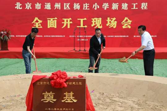 5月30日上午,由集团公司承建的北京市通州区杨庄小学新建工程在位于永顺镇杨庄村通州新城0404街区举行简朴热烈的全面开工现场会。通州区教委主任申键,副主任宋坤一、王秀东,永顺镇政府副镇长刘刚,项目管理、设计、监理单位领导,集团公司党委书记、董事长陈先瑞,副总工程师高阳出席活动。