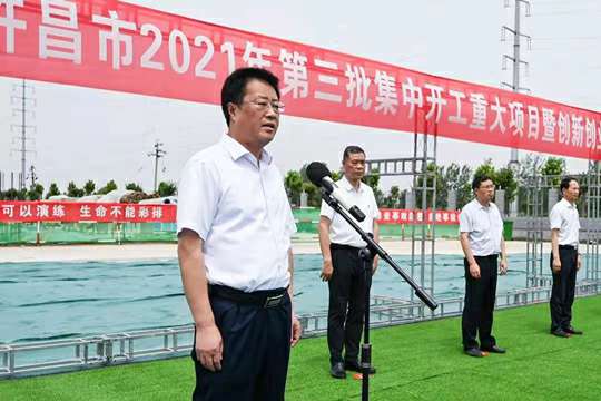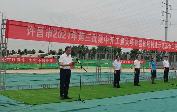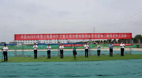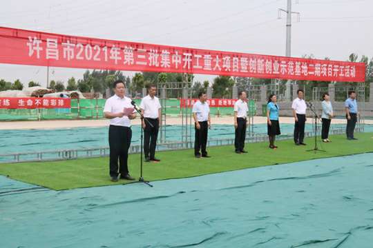 7月10日上午,河南省许昌市2021年第三批集中开工重大项目暨创新创业示范基地二期项目开工仪式顺利举行。许昌市委常委、纪委书记、监委主任方婷,魏都区委书记李朝锋,区人大常委会主任申健民,区政协主席杜晓辉,区委常委、区委办主任程中山,区委常委、区纪委书记、区监委主任徐光,魏都产业集聚区管委会主任楚文选,AG网页版-AG(中国)河南分公司总经理黄辰,魏都区政府相关部门、投资公司、产业集聚区、霸陵办事处等单位负责人参加活动。区委常委、常务副区长张挪威主持仪式。