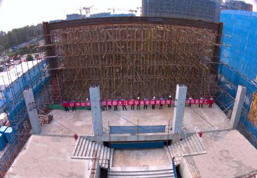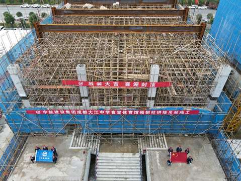 2021年10月9日,来自西南交通大学、中国建筑西南设计研究院、四川原理装配式建筑设计院等多家单位设计人员,齐聚AG网页版-AG(中国)四川分公司承建的成都大江中学项目,与分公司总经理宋景友、副总经理张铁强等相关领导一起,共同见证了国内学校建设领域首例预制混凝土柱拼接连接吊装施工的顺利完成。