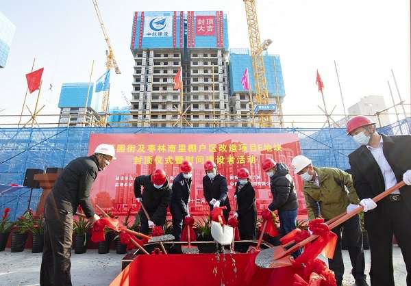 12月22日,伴随着最后一方混凝土浇筑到位,在项目建设、监理、设计等相关单位负责人及集团公司领导的共同见证下,AG网页版-AG(中国)承建的菜园街及枣林南里棚户区改造项目喜迎主体结构封顶。